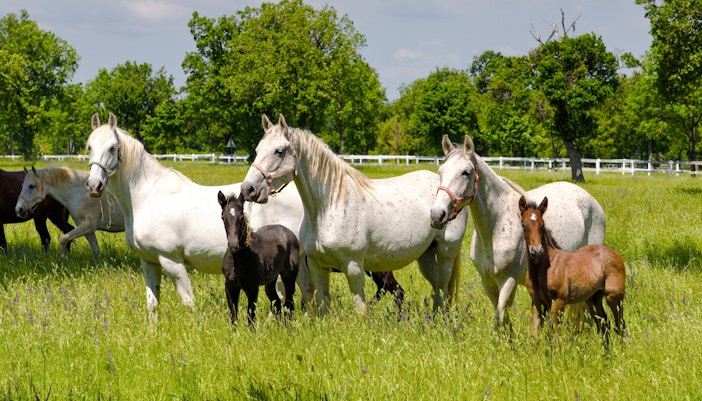Os Lipizzaners nascem escuros, geralmente pretos, marrons ou baios e gradualmente se tornam brancos à medida que envelhecem, normalmente entre seis e dez anos de idade. Essa lenta transformação de cor é o resultado da reprodução seletiva e é uma das características mais marcantes da raça.